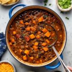 This chili freezes beautifully. I portion it into freezer-safe bags or containers, label them, and it keeps well for up to 3 months. When thawed, the sweet potatoes may soften slightly, but the flavor remains fantastic.